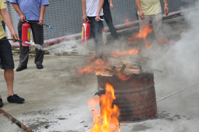 員工們共同參與滅火中