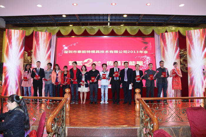 2013年元月30日,公司組織了“夢想2013 傳遞正能量” 2012泰能特公司年會 ,會上頒發(fā)了:2012年度優(yōu)秀員工、先進(jìn)集體、模具制造獎。