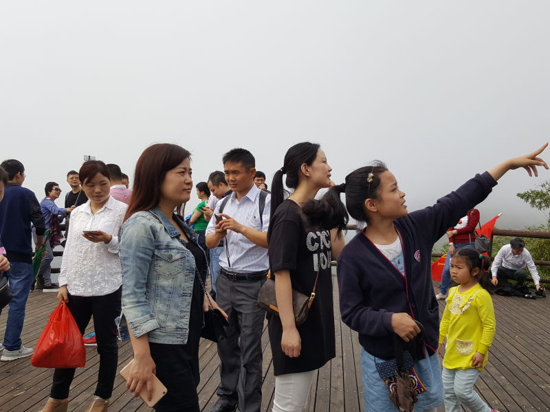第四站:長老峰風景區(qū)之韶音亭。我們乘坐索道纜車上山,下纜車步行幾百米就到了韶音亭,這真是個觀景的好地方,站在亭邊放眼望去,蒼翠幽深的山林,各種形似的山峰(如:僧帽峰、書童石等),變幻莫測的云霧、山底的人工河等無限美妙的自然風光盡收眼底,使人產生無窮的遐想,還有一種飄飄然的感覺。