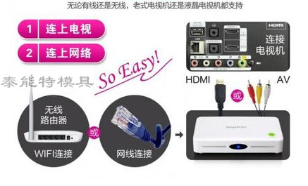 關于網絡電視機頂盒怎么安裝?如何用?網上有一大堆方法推薦,但是都說的太繁雜了,讓人看得很頭痛,這次,泰能特塑膠模具廠給大家分享就非常簡單有效,因為泰能特模具本身就是做機頂盒外殼的大型廠商。其實網絡電視機頂盒的安裝方法和普通的DVD安裝方法沒有什么太大區(qū)別,就是多了一條網線,閑話不說,你自己往下看。