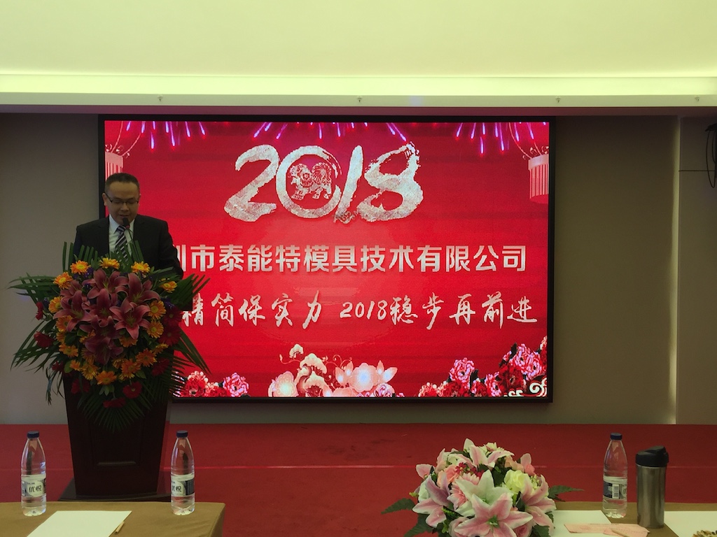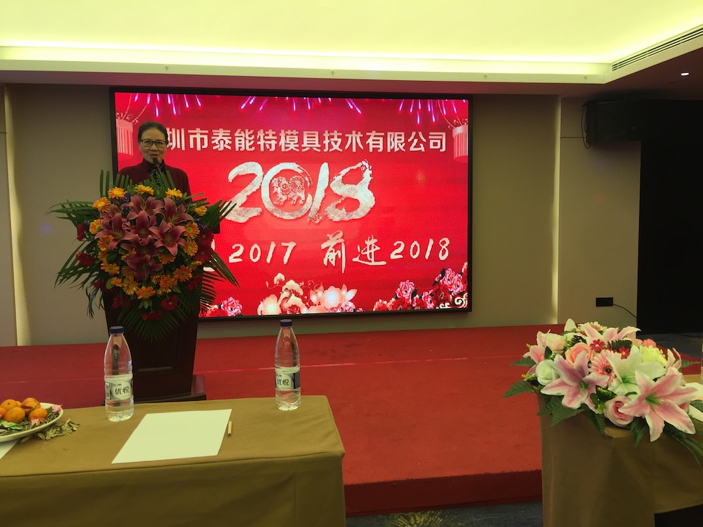 2018年元月27日深圳市泰能特模具技術(shù)有限公司“感恩2017前進(jìn)2018”迎新年會在石巖中濠國際酒店隆重舉行。公司董事長及總經(jīng)理分別在年會上作了新年致辭和“2017精簡保實(shí)力,2018穩(wěn)步再前進(jìn)”的新年工作報(bào)告。報(bào)告中回顧了公司2017年存在的一些問題和取得的成績及2018年的發(fā)展規(guī)劃。